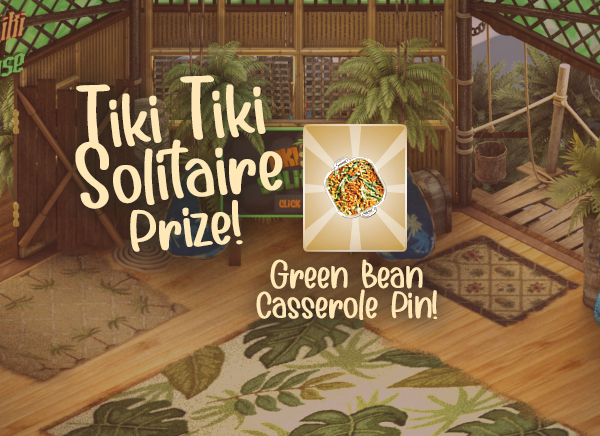 Solve a game of Tiki Tiki Solitaire in the Australian Zoo to win the NEW Thanksgiving Green Bean Casserole Pin! The Tiki Tiki Solitaire Game is located at the Tiki Tree House Gift Shop in the Jungle Zone of the Australian Zoo! Happy Thanksgiving!