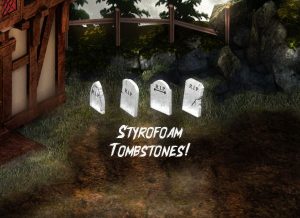 These unique Styrofoam tombstones are lit from the ground up, to add